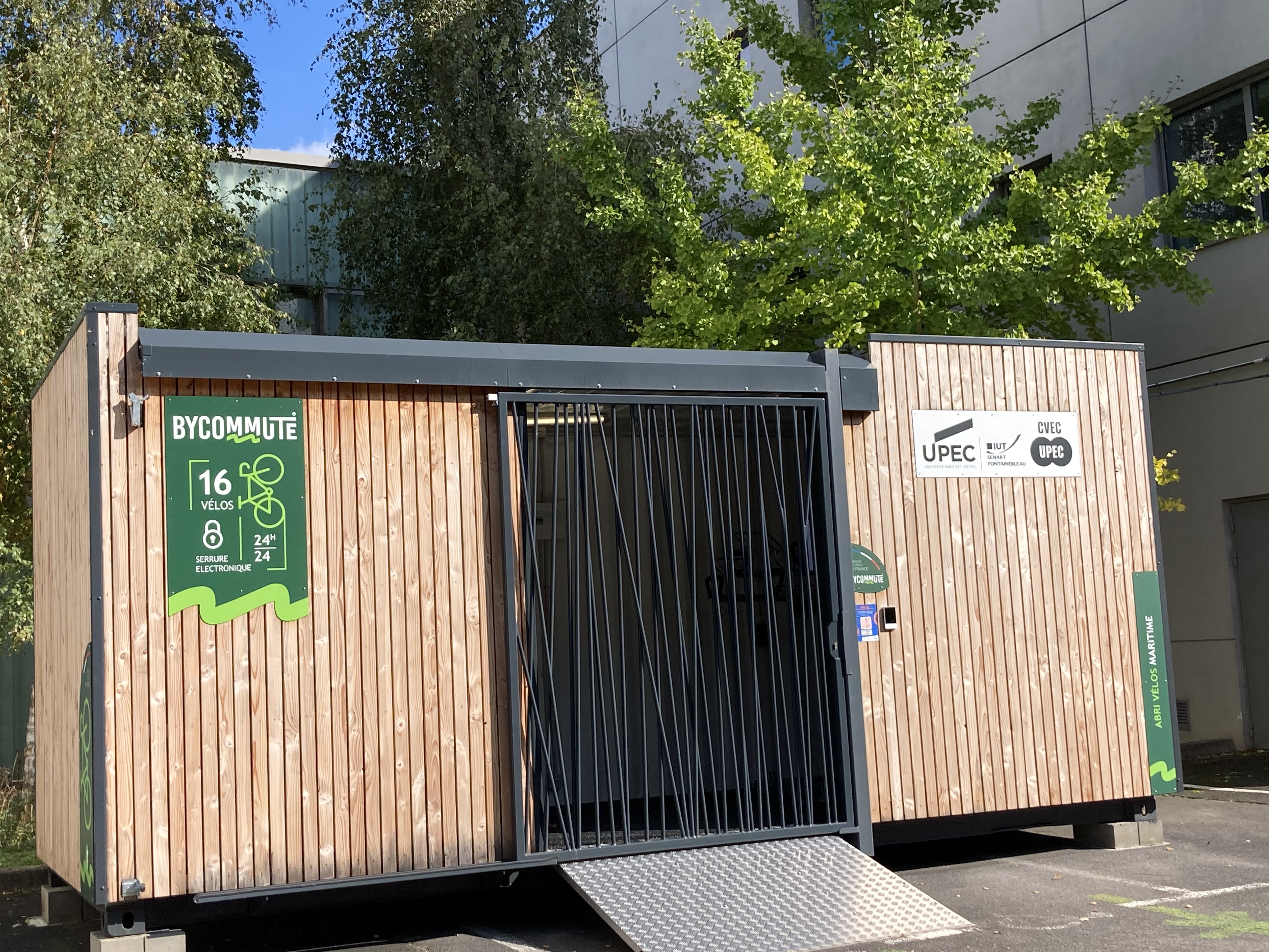 Cet abri, conçu sur la base d’un container maritime, offre une solution éco-responsable et sécurisée pour le stationnement des vélos. L’accès est réservé aux étudiant.e.s et aux personnels du campus de Sénart, sous réserve de la programmation de leur carte d’étudiant/carte professionnelle par le service Parcours étudiant Sénart, pôle vie étudiante.